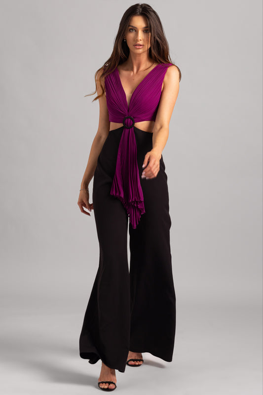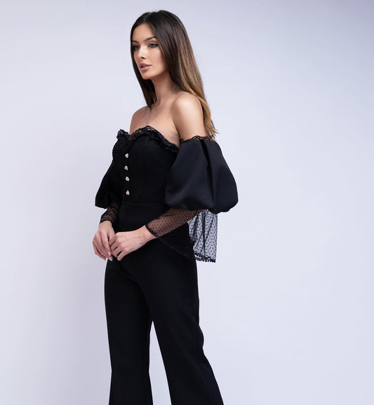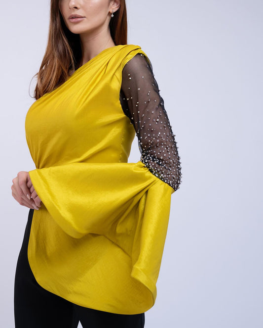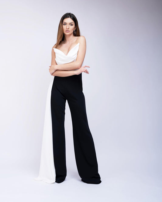 Salopetă Eleganta Contrast Black& Yellow-Design Asimetric